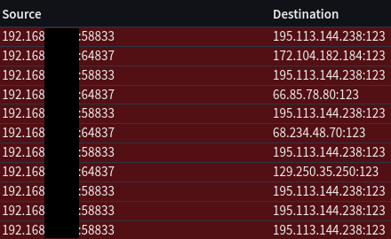 Edit: Midnight brain forgot what ports are for, and that is for NTP, thanks yall