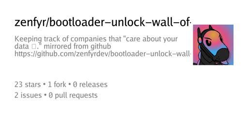 arrow-up11arrow-down1external-linkBootloader Unlock Wall of Shameplus-squarecodeberg.orgtestman@lemmy.ml · 28 days agomessage-square0linkfedilink