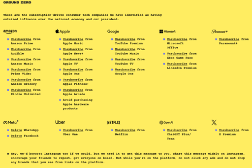 Io sono totalmente fuori da Amazon, Epic, Facebook, Instagram (sto lavorando su WhatsApp), Netflix, Uber e X, tra poco anche da Microsoft e tra un po’ di più anche da Google.