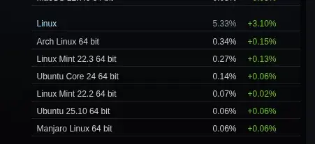 arrow-up11arrow-down1external-linkSteam On Linux Use Skyrocketed In March - More Than Double The macOS Gaming Marketsharewww.phoronix.comcommander@lemmy.world to Games@lemmy.worldEnglish · 26 days agomessage-square0linkfedilinkcross-posted to: technology@lemmy.worldtechnology@lemmy.ml