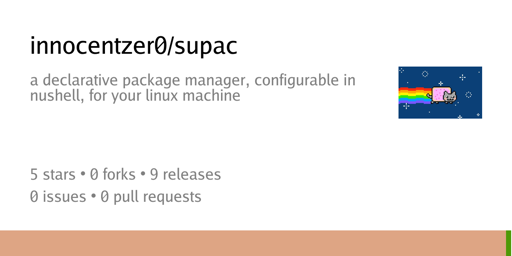 1 month agoYep, it should cover you alright! I use all the 5 package managers mentioned here (hence the order :p). Scriptability and post hooks in particular make it even better (cloning/copying dots, activating systemd units, other stuff, etc).